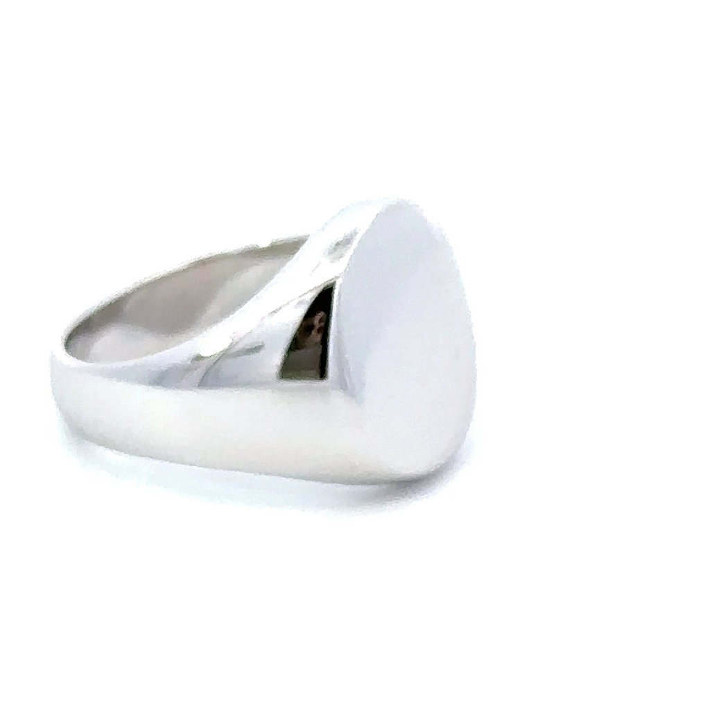 The signet face measures approximately 14mm x 11mm, creating a bold and elegant statement on your hand. With a depth of 1.2mm, this ring is a striking piece that can be engraved with initials, symbols, or even your family crest, adding a personal touch and showcasing a unique heritage.
